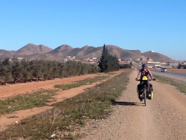 The next day started out very well. The road was much more quiet and we had some gradual climbing to get up from sea level towards the various mountains of central Morocco. Part way through the day I noticed some issues with my rear shifter and allot of noise coming from it while pedaling. This was very concerning and we decided to end our day a little bit early to avoid damaging my bike and to figure out what was happening. We were hoping to camp but being on the edge of a moderately sized town there were houses all over the country and no good places to sneak way for the night, the Spanish countryside seemed more empty by far.