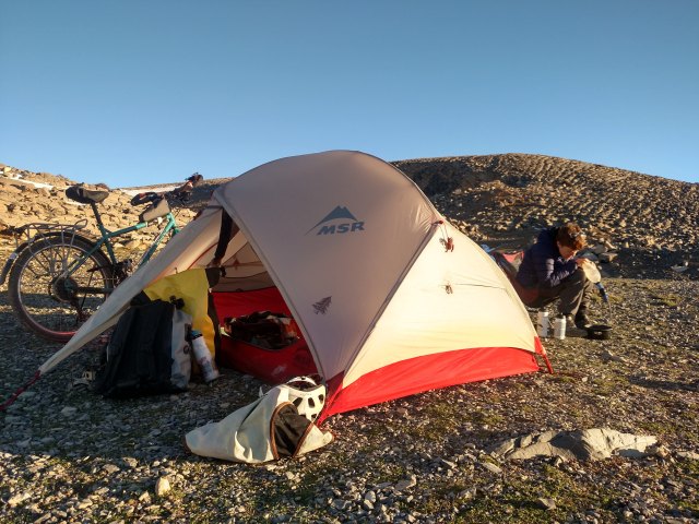 When we finally made it to the top of the pass we noticed a beautiful spot to camp right at the top. We stubbornly decided to not budge and camp in this spot, we had already compromised the night before so tonight we were going to camp where we wanted. A local shepherd came by to see what we were up to and he was extremely nice, his daughter and mother came by as well and we were loving the interaction despite the language barrier and then the police showed up.