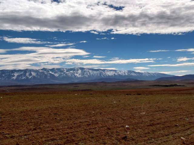 We had just struggled over a snowy winter pass and were getting worn down by constant police escorts and the stress and a lack of very needed personal moments which a constant police escort entails. Waking up in our cheap hotel room in Imouzzer Marmoucha, we decided to head out of town towards the High Atlas mountains. We had finished with the Middle Atlas and had a large high plateau to cross between the two mountain ranges.