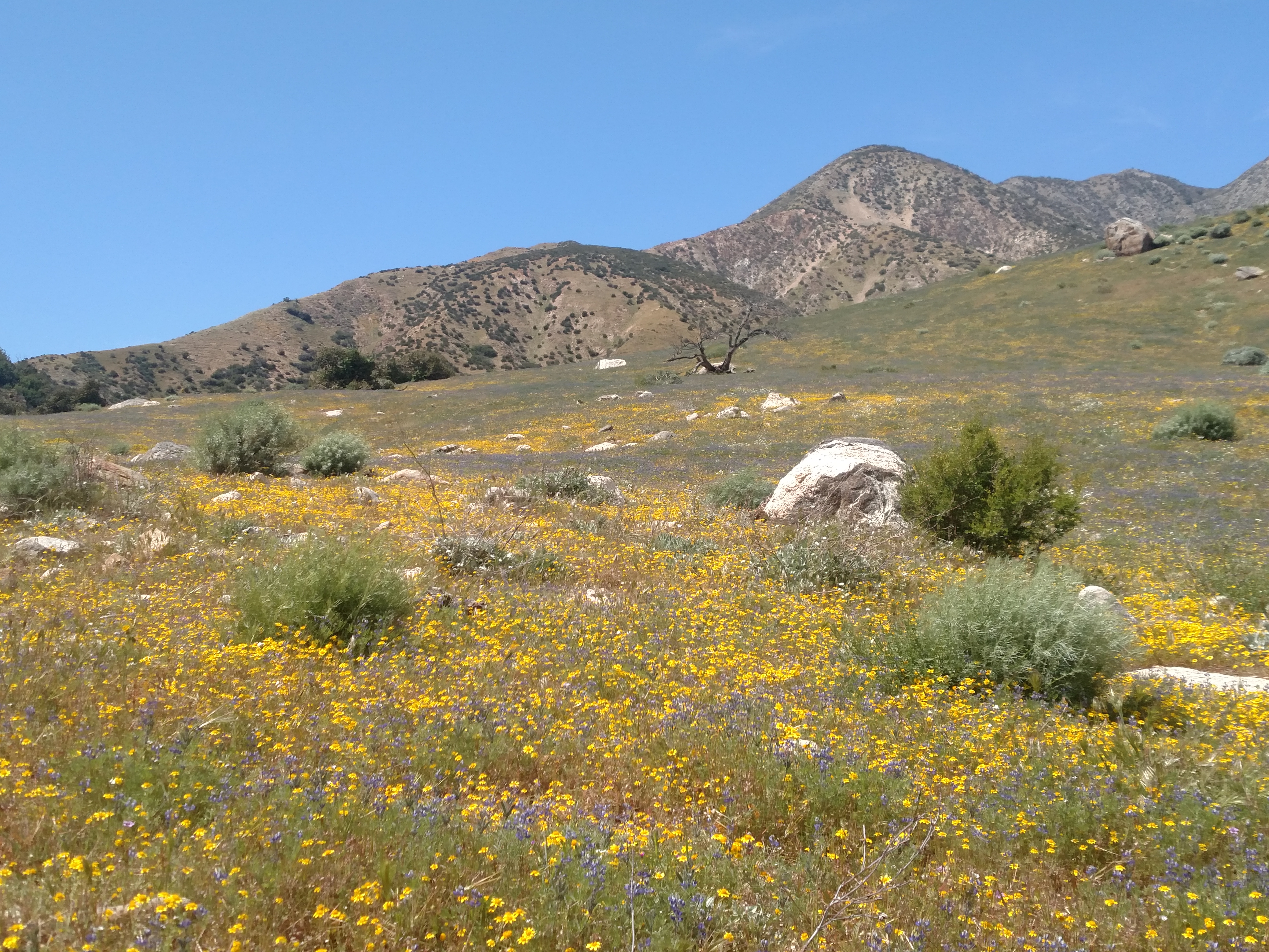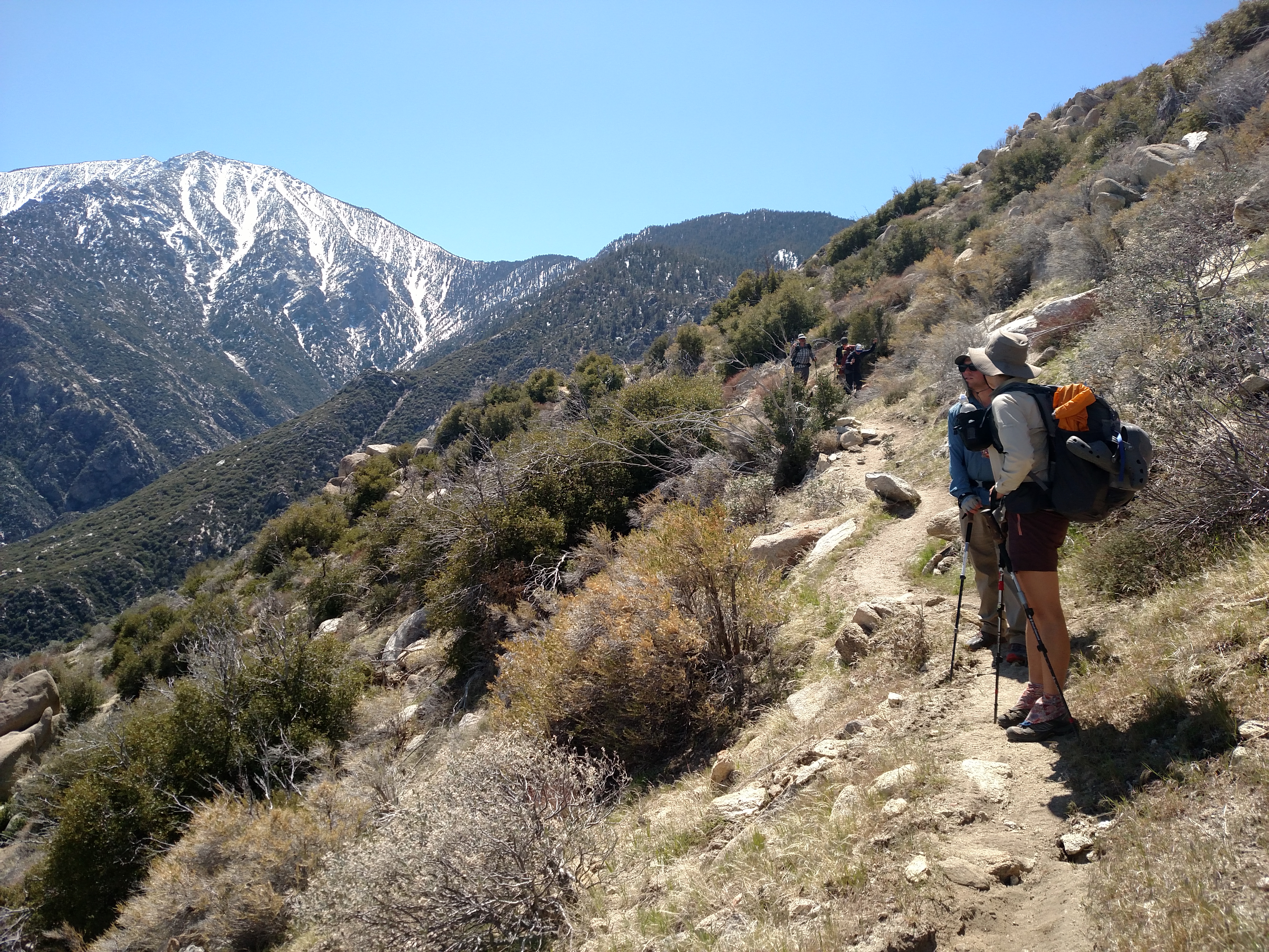 The next few days were beautiful with wildflowers and an interesting section of trail which had washed away. We simply hiked in the water as we had practiced many times on the trails in Southern Utah. We also saw various snakes on trail and enjoyed the views of Jacinto behind us as we made our way further north. Eventually we arrived at Big Bear where we stayed at the local Hostel for two nights.