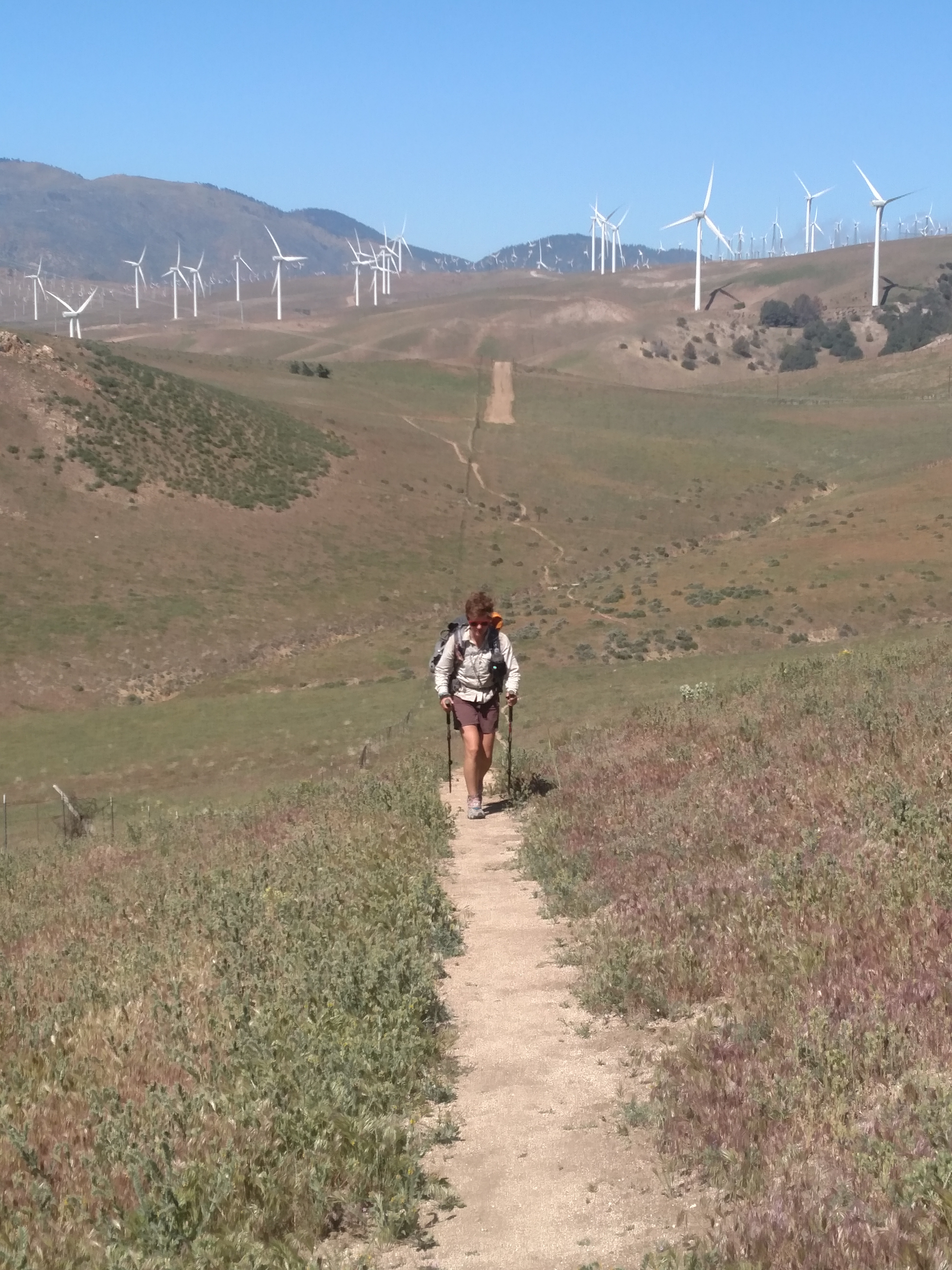 It was actually a beautiful section with Joshua trees everywhere and insects galore loving the green and cool temperatures. I spent time doing some insect photography and we eventually made it to the other side of the aqueduct section. After the aqueduct was one of the largest windmill farms in the world. It would be our constant normalcy for days to be surrounded by windmills swishing around us and the ever present wind justifying all of them. At night you could see them blinking all around in the distance.