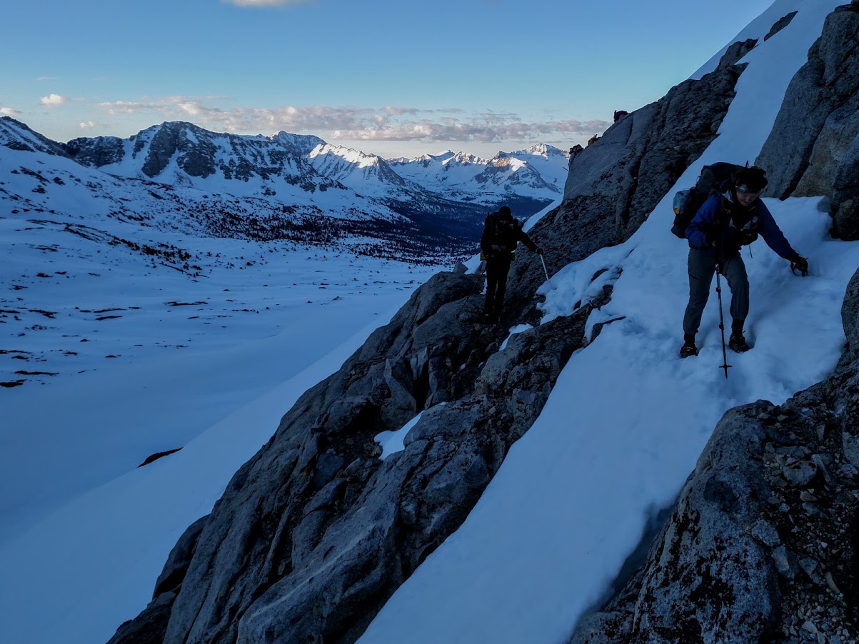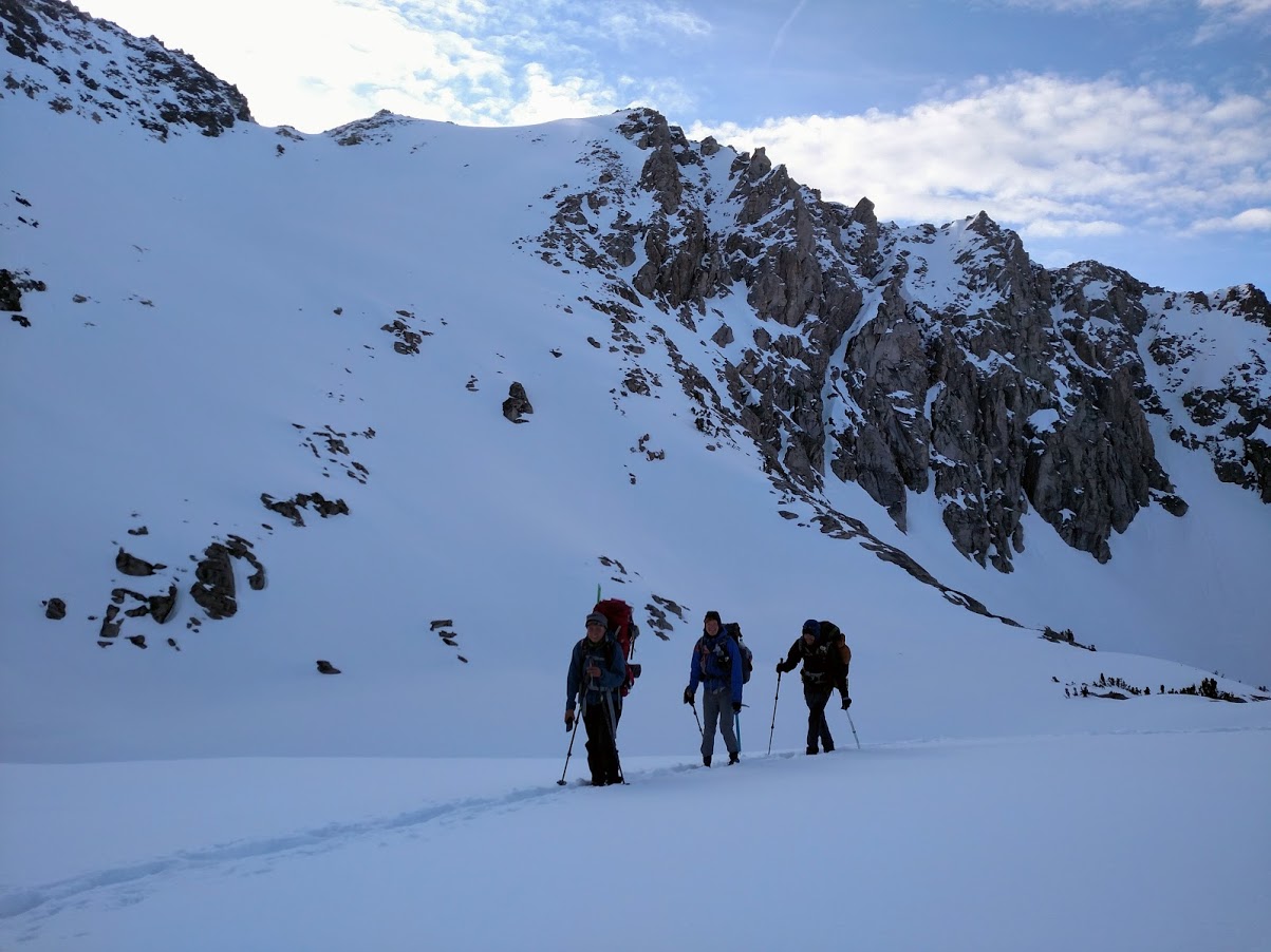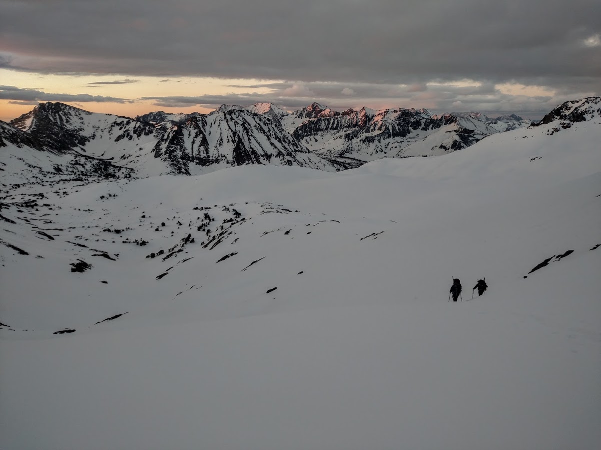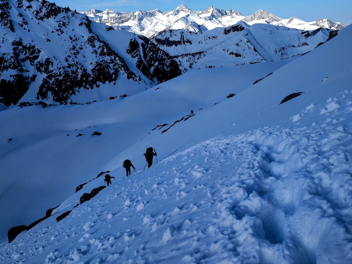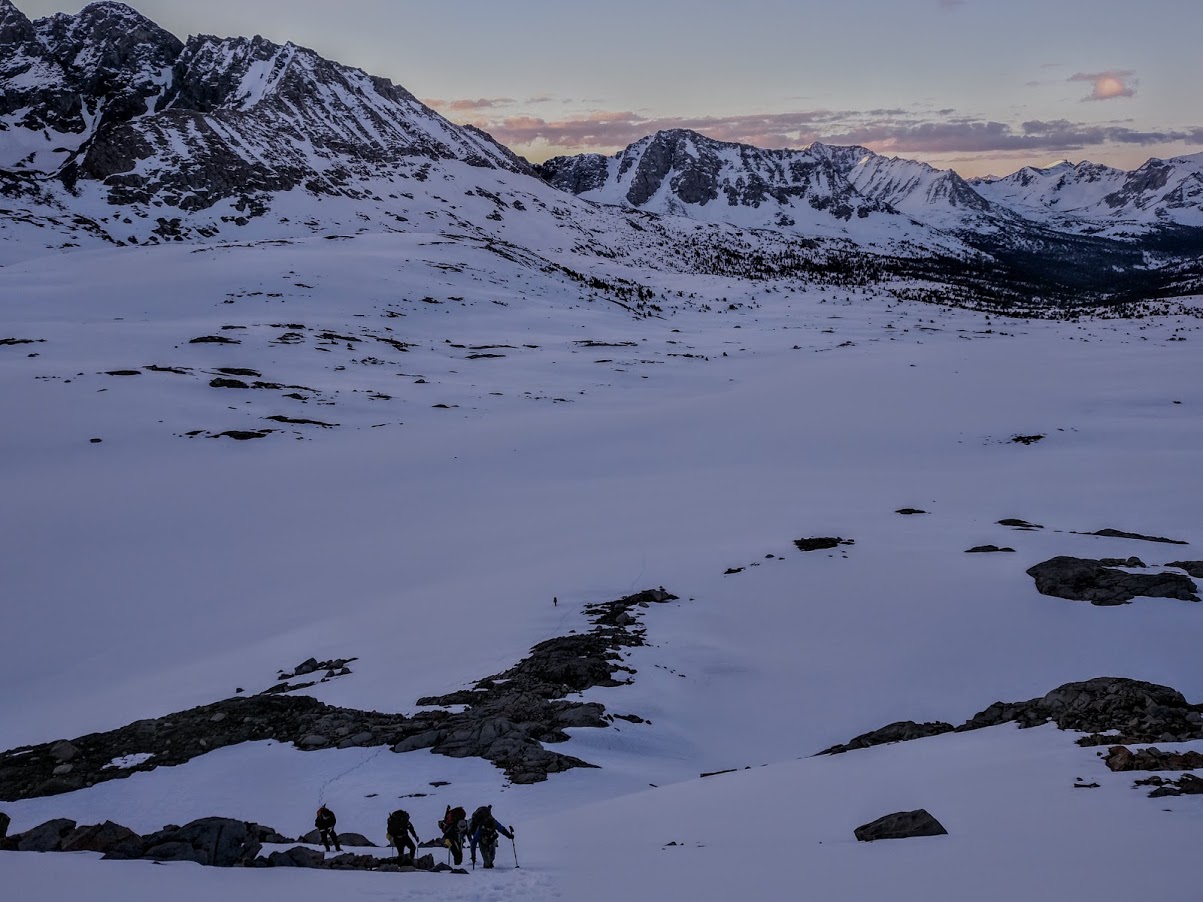 That night we got to bed early and began hiking by 4:30 in the morning, when the snow was completely solid. It was a steep hike but it felt like walking up stairs with the frozen snow and avalanche danger at zero.