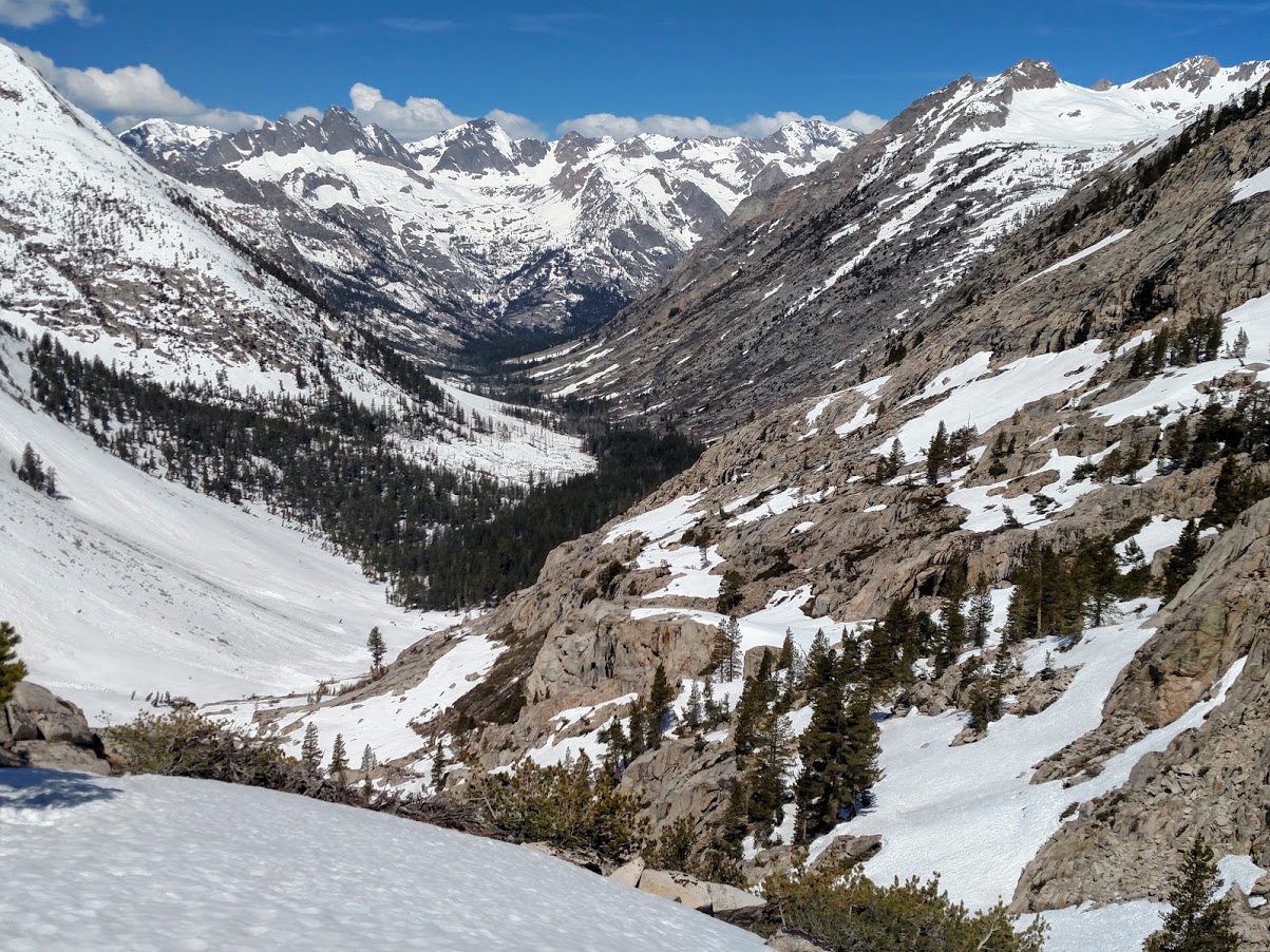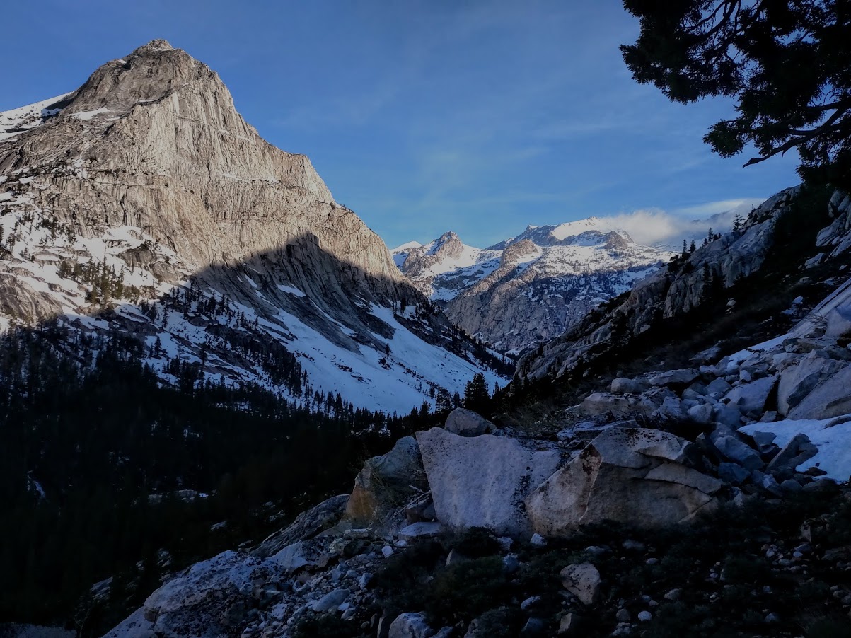 Early the next morning we left camp before Bird got up, since we had to get over Bishop pass and wanted to beat the sun and heavy snow it created. The valley was beautiful to look at from the side trail.