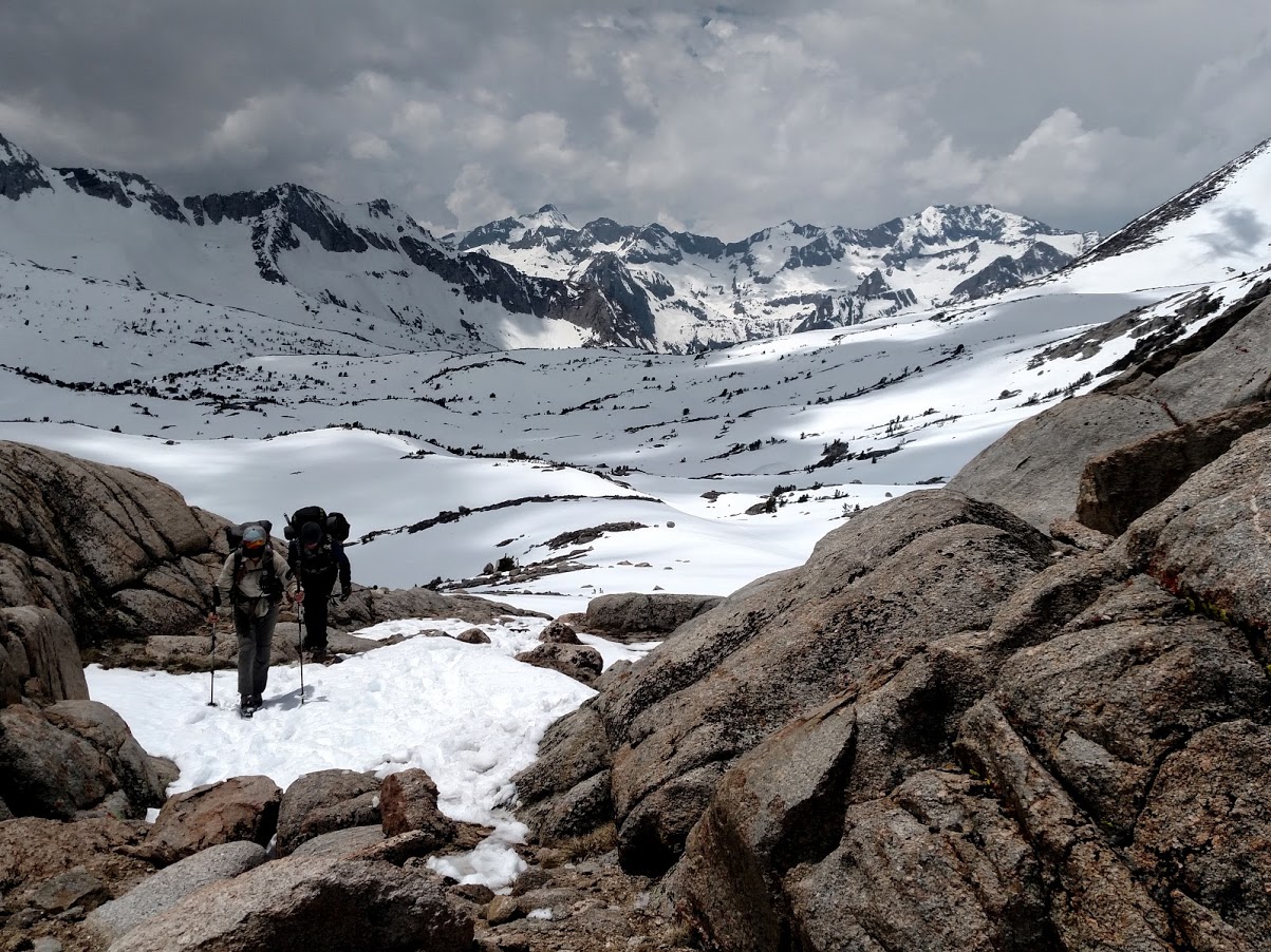 When we left the hostel the entire place emptied out. There were almost 30 people camped at the parking lot for Kiersarge pass, it was a miracle everyone was able to find a hitch up. Our group of Happy Feet, Weatherman, Uky and I had prepared for six days of food to get to Bishop pass, it was a short distance but we were not sure of the weather holding after our last experience and wanted to be prepared to lay low for a whole day in case we got stormed in. Everyone else including Bird wanted to push all the way to Mammoth pass even though Vermilion Valley Resort was still closed so no resupply was possible their. Not wanting to carry that much food and wanting to play it cautiously we knew we would have to say goodbye to the many people at the Bishop pass exit.