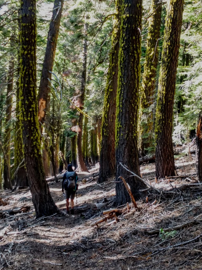 Once we rounded Sierra Butte we ran into more snow… We knew that we weren’t completely done with it but were being extremely hopeful that it would be minimal. The snow lasted the next thirty miles for most of the time and we just kept pushing along, wishing for a complete end to the snow. In this area we also saw a ton of moss on the trees marking the snow level at its highest during the winter. The moss level was above our heads in most areas so we knew, despite the fact that we were walking on snow, that there was much more here during the winter.