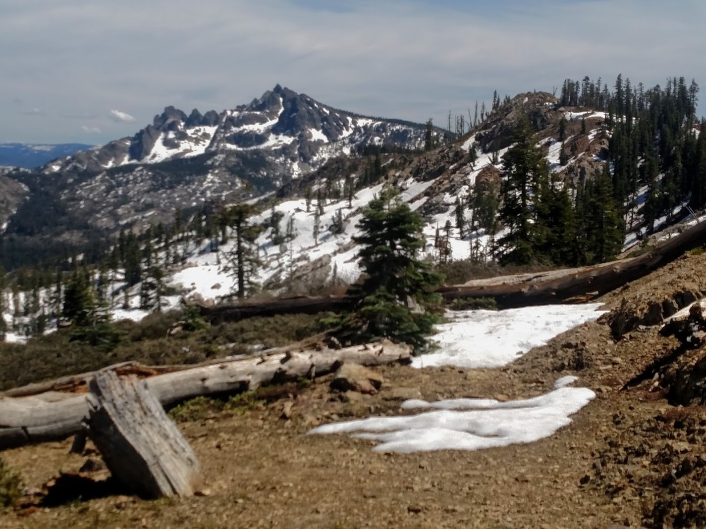 The views of Sierra Butte from the North side were beautiful and we did end up running into several desert hiker friends on a snowy slope. They told us the rest of their group including Bugle and Disco had passed us in the night so we didn’t get the reunion we were hoping for. After a quick conversation about the big snow levels they would have southbound we parted ways once more knowing it may be the last time we ever saw them on trail.