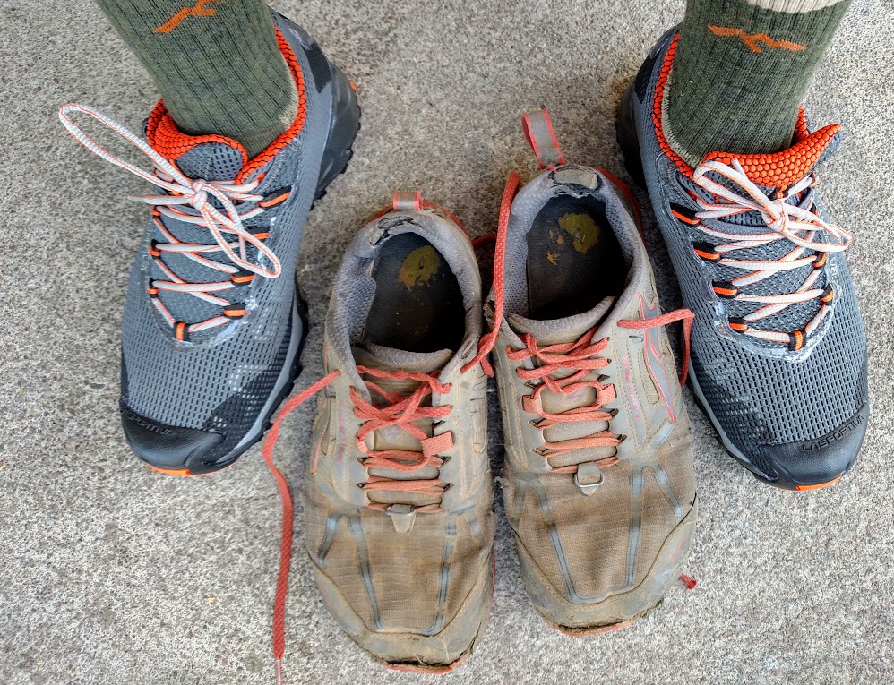 We haunted the local gear store trying not to stink it up too badly with our hiker stench. I shopped around for a while but they didn’t have the same shoes I started with so I switched it up to a pair of La Sportiva Wildcats. I was excited about new shoes but nervous about the different design and feel. Even though my old shoes were completely spent, my feet were utterly used to them. The new pair of shoes could be a very painful experience while breaking them in.