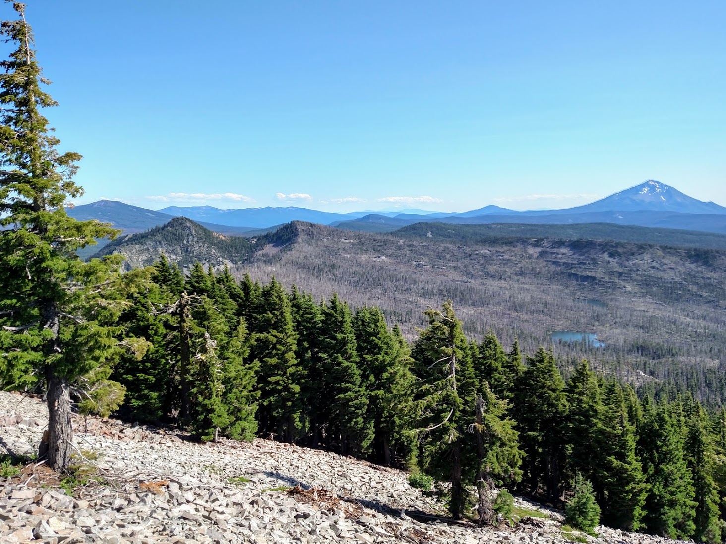 The first day in Oregon was a beautiful one. We could still see Shasta poking up over the horizon and yet it felt different since we were viewing it from another state. Town and I were still hiking with Snowcat and company who were all shooting for getting to Ashland on the same day. I was on schedule to make it to my family reunion on the coast so we enjoyed taking our time a little and chatting with the other hikers around us.