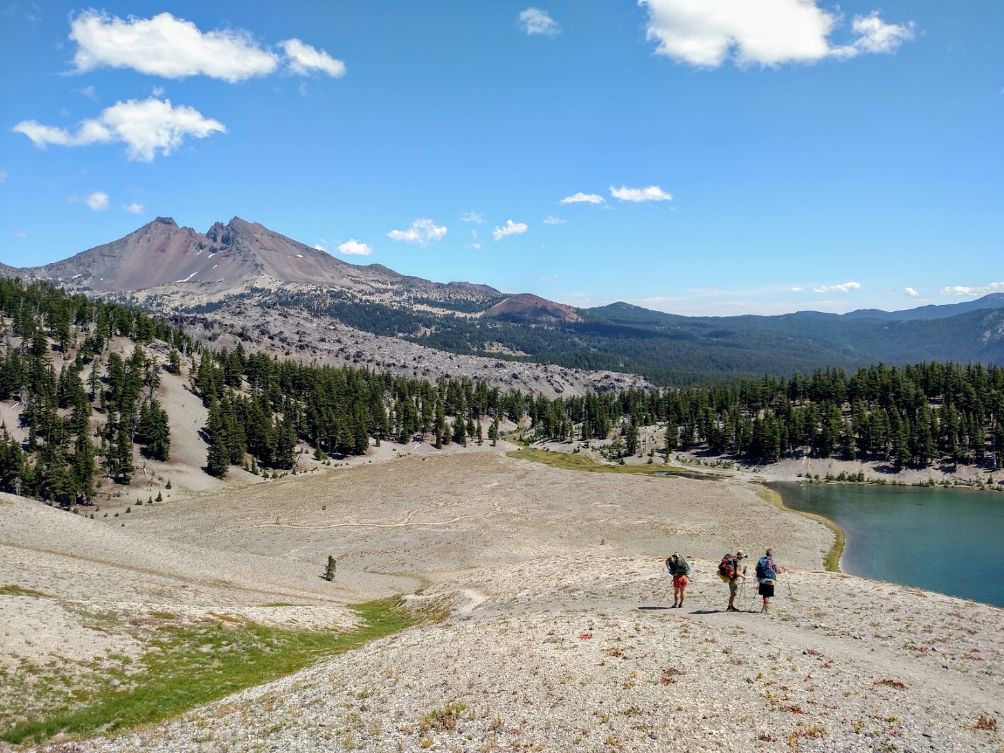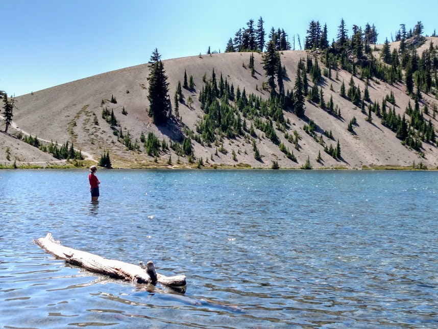 The following morning we descended South Sister to return to the PCT and to hike through the rest of the Three Sisters Wilderness. We met many more day hikers and even one woman who had hiked the PCT in the previous year. Hiking around the base of the three sisters was beautiful as always with meadows, cool streams and massive lava flows breaking up the landscape. I had backpacked this section with my dad and our neighbor Peter when I was in middle school, many years before, and I hadn’t been back to this section of trail since. It was sad to see several burns had gone through since my time there but it was still exciting to be on a section of trail I had hiked before. This was the first time I was on a section of the PCT I had already been.