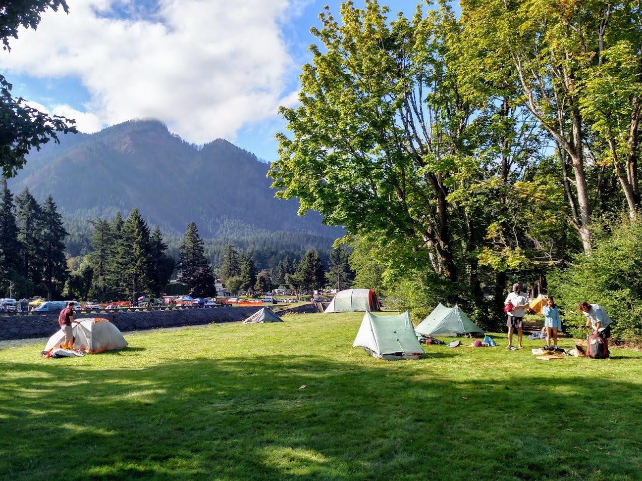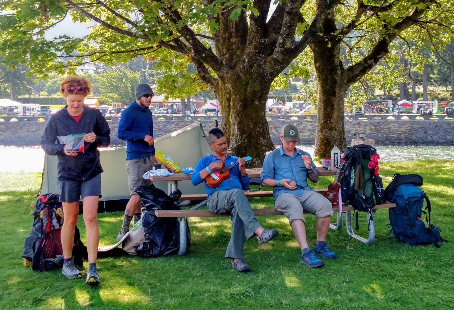 Once at trail days we headed to the campsite designated on Thunder Island in the Columbia river. It was a beautiful spot to camp with the gorge rising up around us and the massive river flowing past. There were hundreds of other through hikers already there and many venues set up advertising outdoor gear. We immediately began seeing familiar faces from other hikers who we hadn’t seen for months and after setting up our camp I enjoyed the family reunion vibes while wandering around.