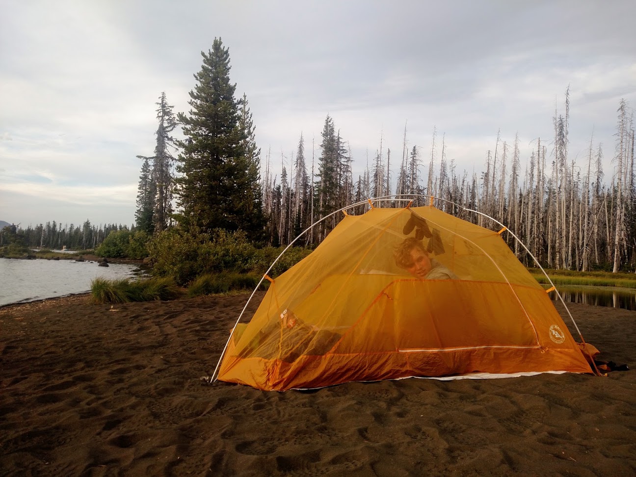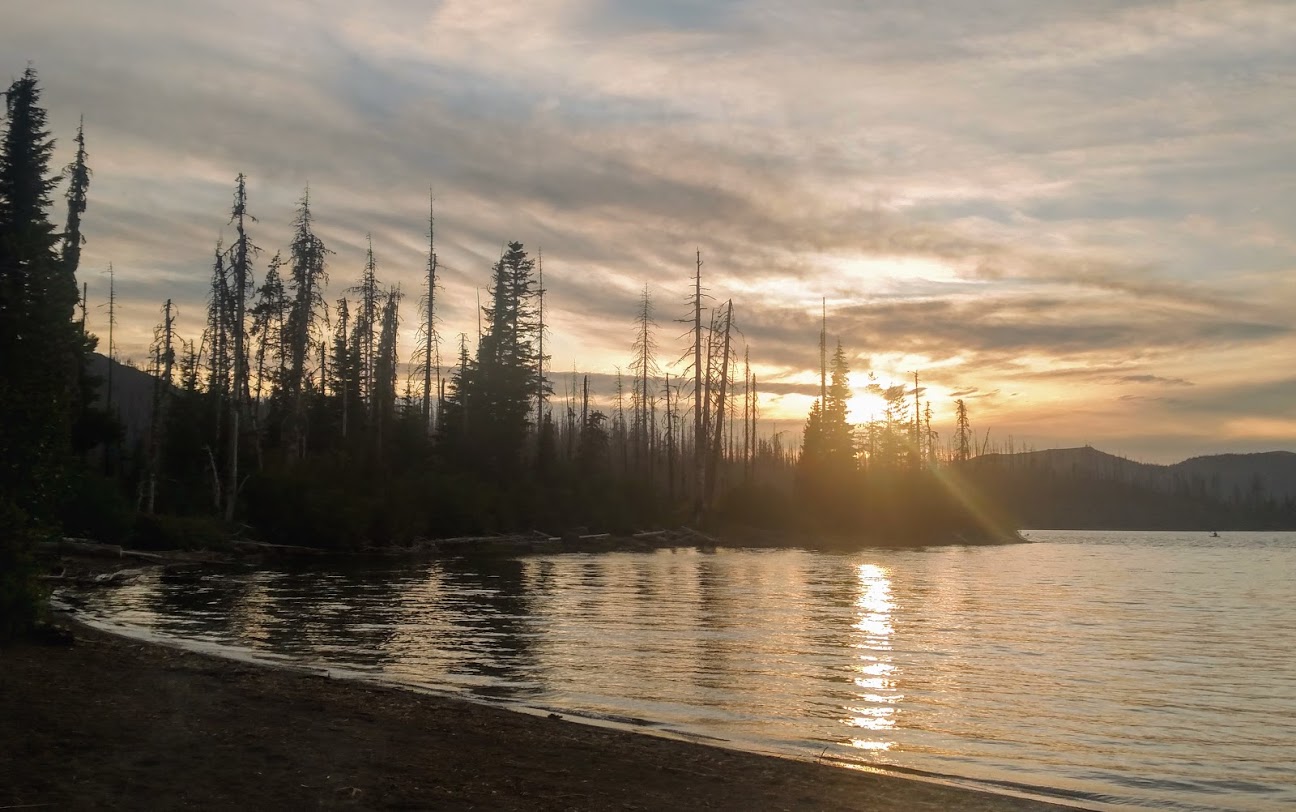 We wandered down to the lake and found a good spot to camp on a beach made of volcanic sand. We could see other PCT hikers dispersed through out the woods and groups of other people camped around the lake while slowly paddling around in quiet boats. We sat for a long time enjoying the sunset and chatting as we often did in camp. Little did I know this would be the last time we would all camp together on trail.