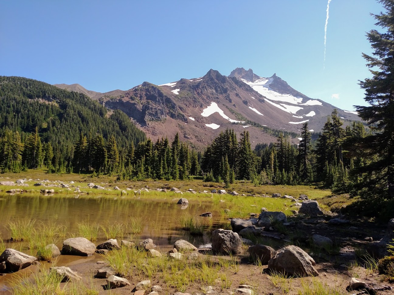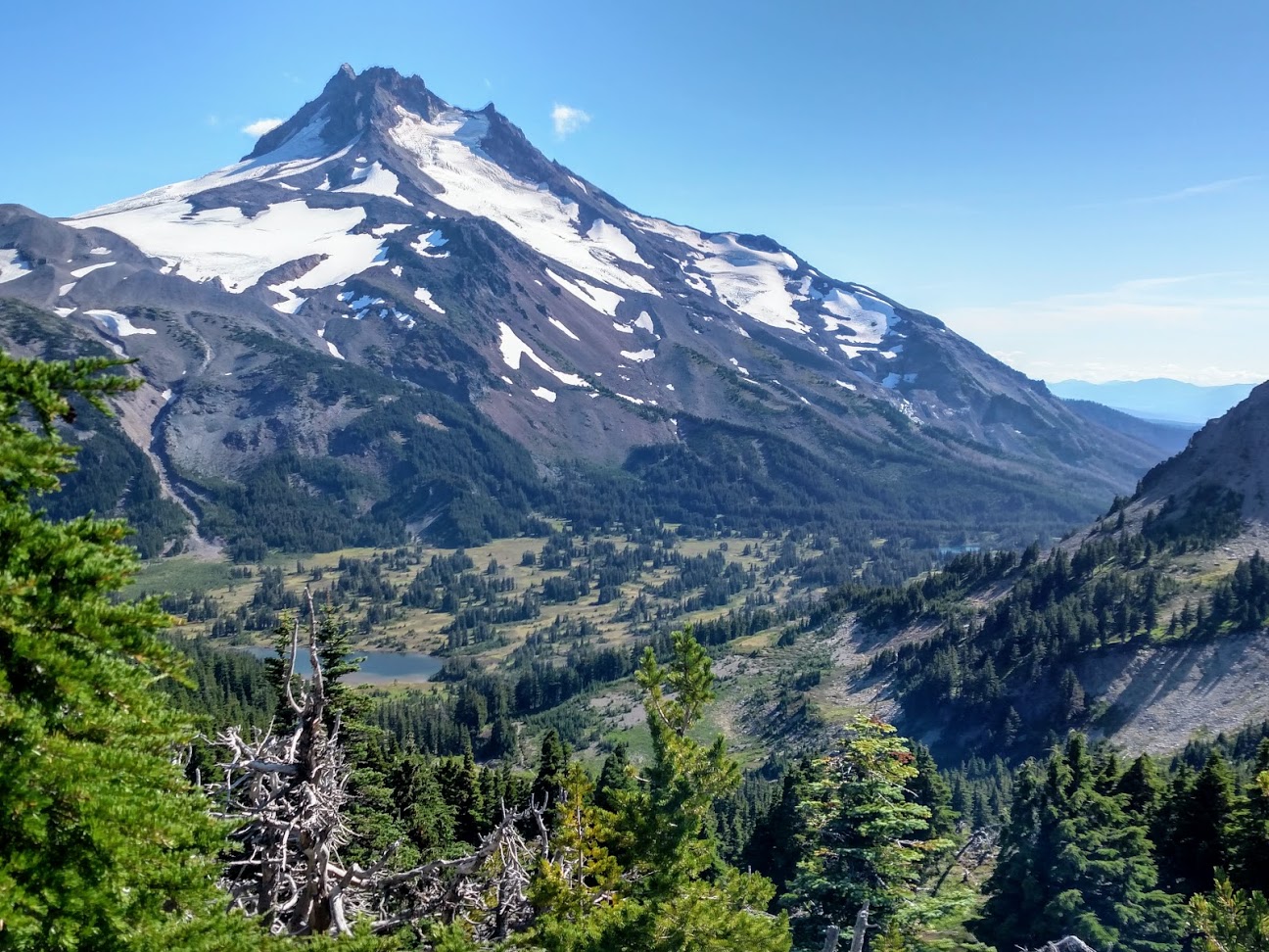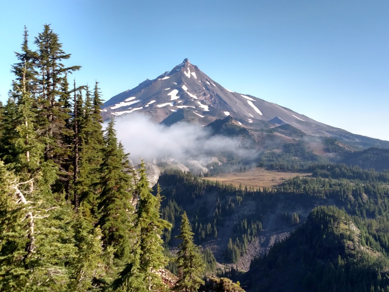 The next morning I was rewarded with a beautiful view of Jefferson above me, breaking through the clouds. It was a great start to the day and as I hiked off I met other hikers who had weathered the rain storm too. Walking through the Jefferson wilderness was stunning. I could look down from the ridge line at lakes I had hiked into in years past with my family. Being somewhere familiar brought back many memories of family backpacking trips and reminded me of the generations of backpackers before me.