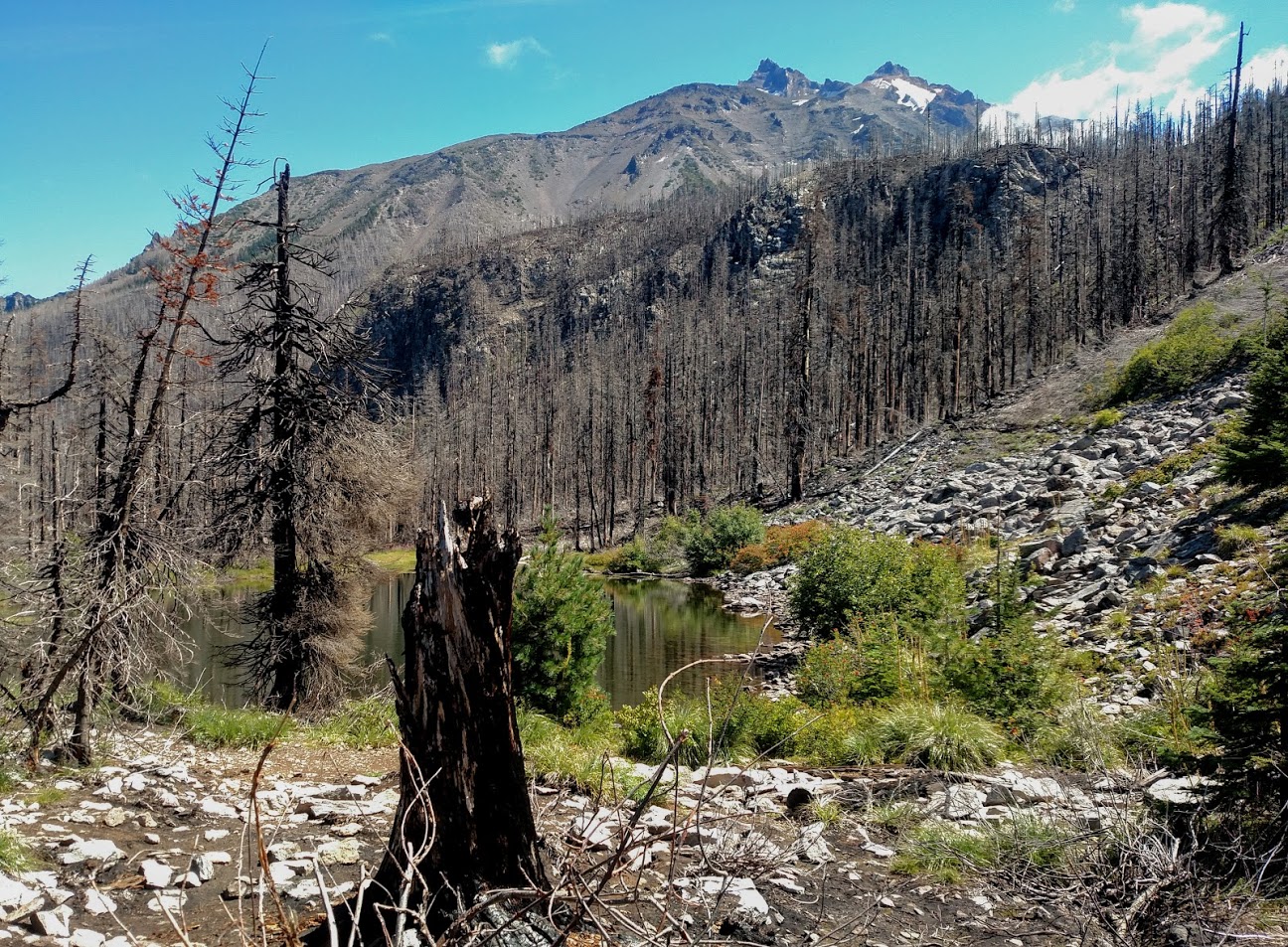 As I descended towards Olallie Lake, my planned camp spot for the night, I was accosted by an angry hornet. It went straight for my leg and stung me in the exact same spot as my first hornet sting from a few weeks earlier. Pissed off at my bad luck and worried about a repeat of my allergic reaction I tried to calmly push on towards my camp spot. I felt lucky in having no immediate swelling and thought perhaps I was stung by a different species of wasp.