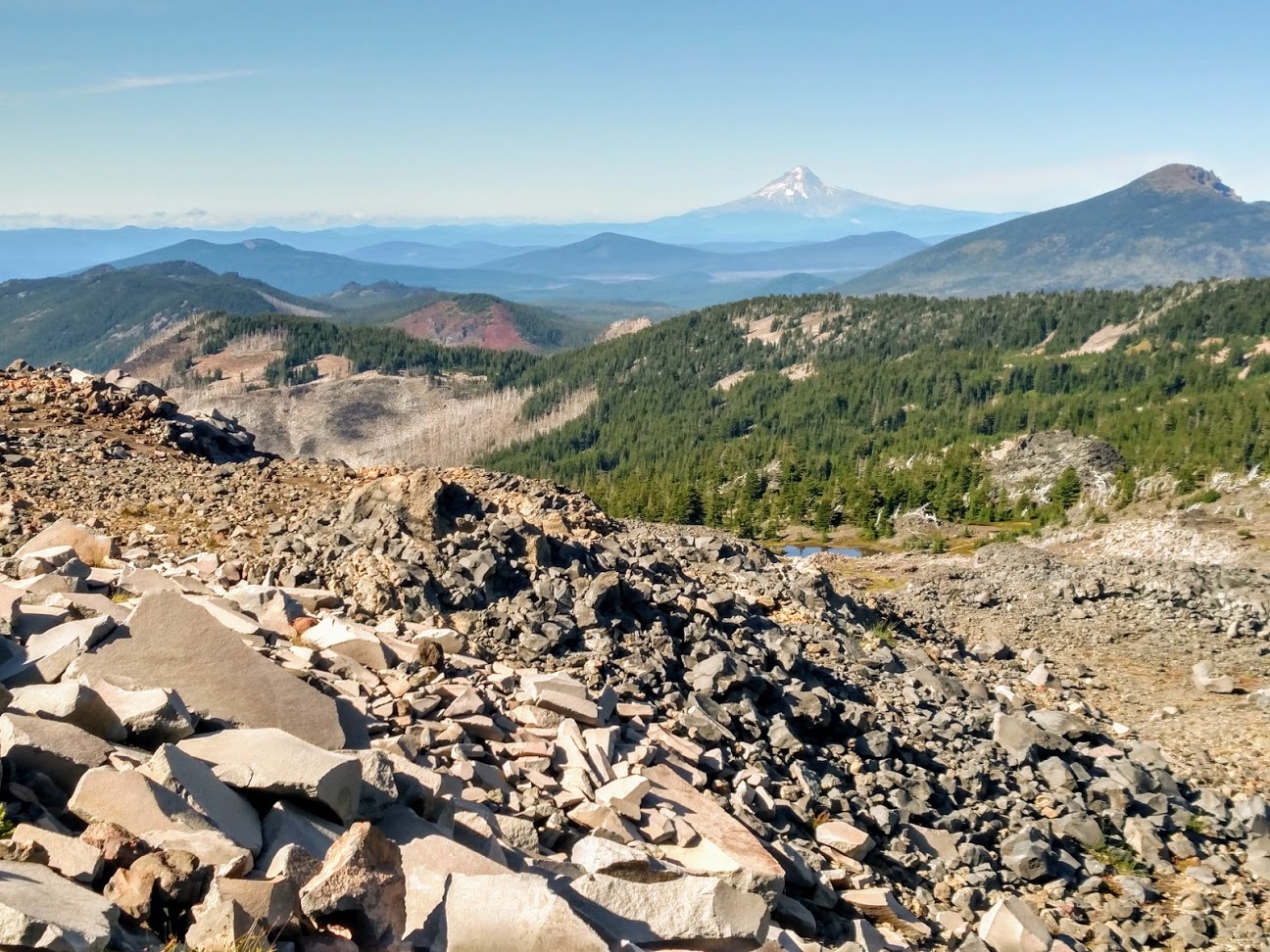 I soaked in all the views where I could. The trail progressed along switchbacks that climbed over ridge lines that webbed out from Jefferson creating allot of trail variety. I eventually made my way to a high point where I could look northwards and see Mt Hood, like a sentinel, marking the northern point of Oregon and the beginning of Washington.