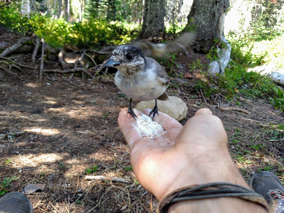 I noticed many grey jays flying around and enjoyed feeding them out of my hands as I had as a kid. Towards the end of the day the throbbing in my leg was getting extremely uncomfortable and I stopped a few miles before my goal to set up camp and take the benadryl I had been holding off on. In my groggy state I barely got the tent set up before falling asleep with a half eaten dinner and mosquitoes buzzing outside my tent.