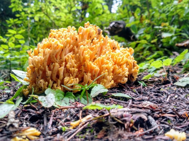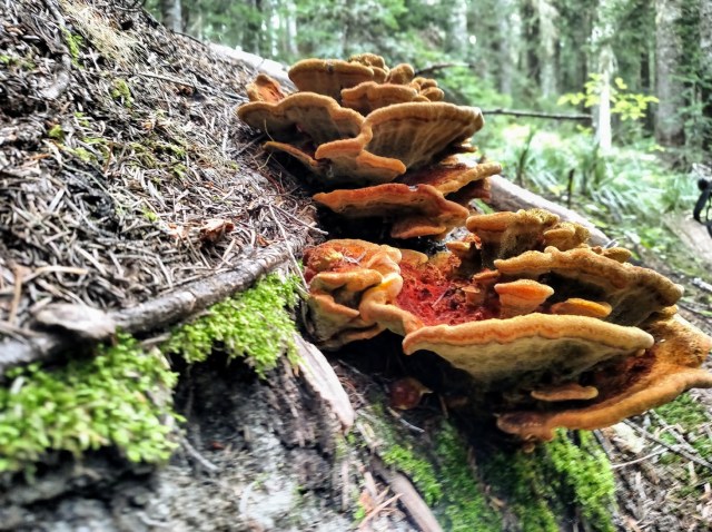 Along the side of the trail there were mushrooms galore. Not knowing much about identification we didn’t try to eat any but I was loving the variety we were seeing. The cool wet summer had led to a veritable mushroom bonanza and the muddy trail felt like a toad stool path winding through the wet and rainy woods.