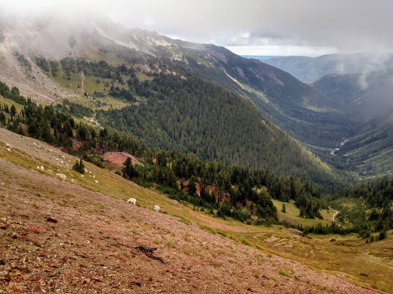 At one point the clouds parted and I was able to see a large group of mountain goats as they were roaming around on the hillside. With the clouds and fog it would have been far to easy to completely miss them even if they were only a dozen feet away!