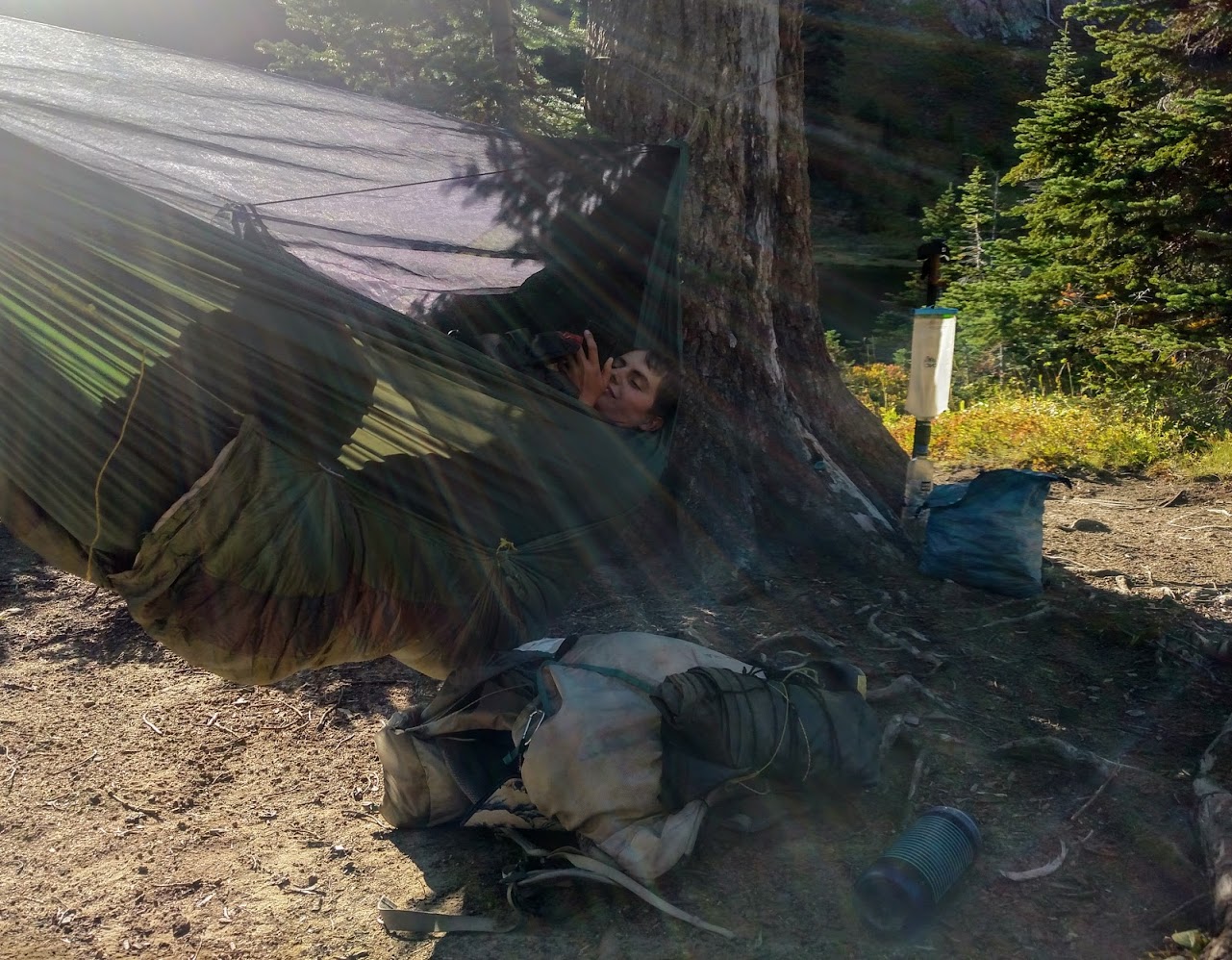 After a short distance the day was already growing late so we stumbled down to a stream to get water and found a beautiful meadow to set up camp, careful to not set up directly under dead and burned trees. Bird was hammock camping so she had the hardest time in finding good trees to use but there were still green trees in small patches providing secure hamocking.